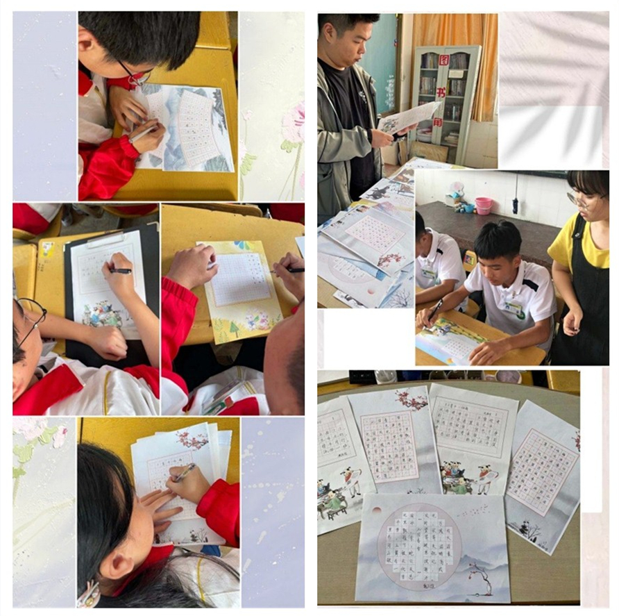 接下来是硬笔书法比赛。本次比赛班上35名同学全部参与,采用现场书写形式,书写内容为毛主席的诗词,例如《西江月·井冈山》《卜算子·咏梅》《七律·长征》等。在现场,同学们个个都饱含深情,做到字体结构适中,落笔干脆利落、铿锵有力,所写的作品或端正,或秀娟,或飘逸,充分展现了同学们勤奋练字的成果。