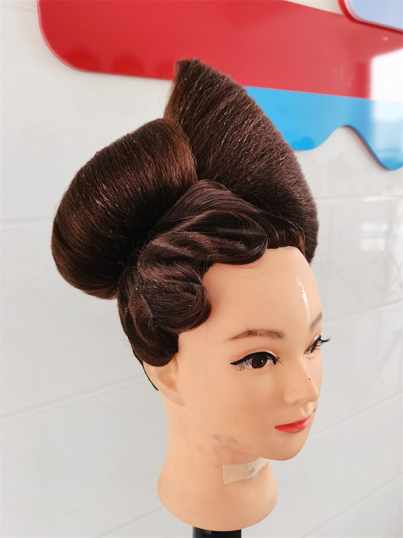 同日,“新娘盘发”项目技能赛校赛在尚美楼一楼开赛。经过激烈的角逐,19级美发与形象设计的蓝珊珊摘得本次桂冠。她的作品作为比赛成果参与职教周的展示。在比赛过程中,一年级学生在现场观摩,她们以这样不同以往的方式进行发型的学习。比赛结束后,专业老师对比赛进行了复盘点评,这使学生们再次对盘发技艺有了更高更深的理解。同时也更能明白“台上一分钟,台下十年功”的成功法则。