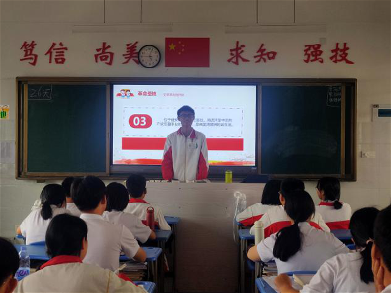 传承红色因子,争做红色青年。5月底,19升学4班在班主任林秋娟老师的带领下,开展了《革命历程中的红色故事》宣讲活动。