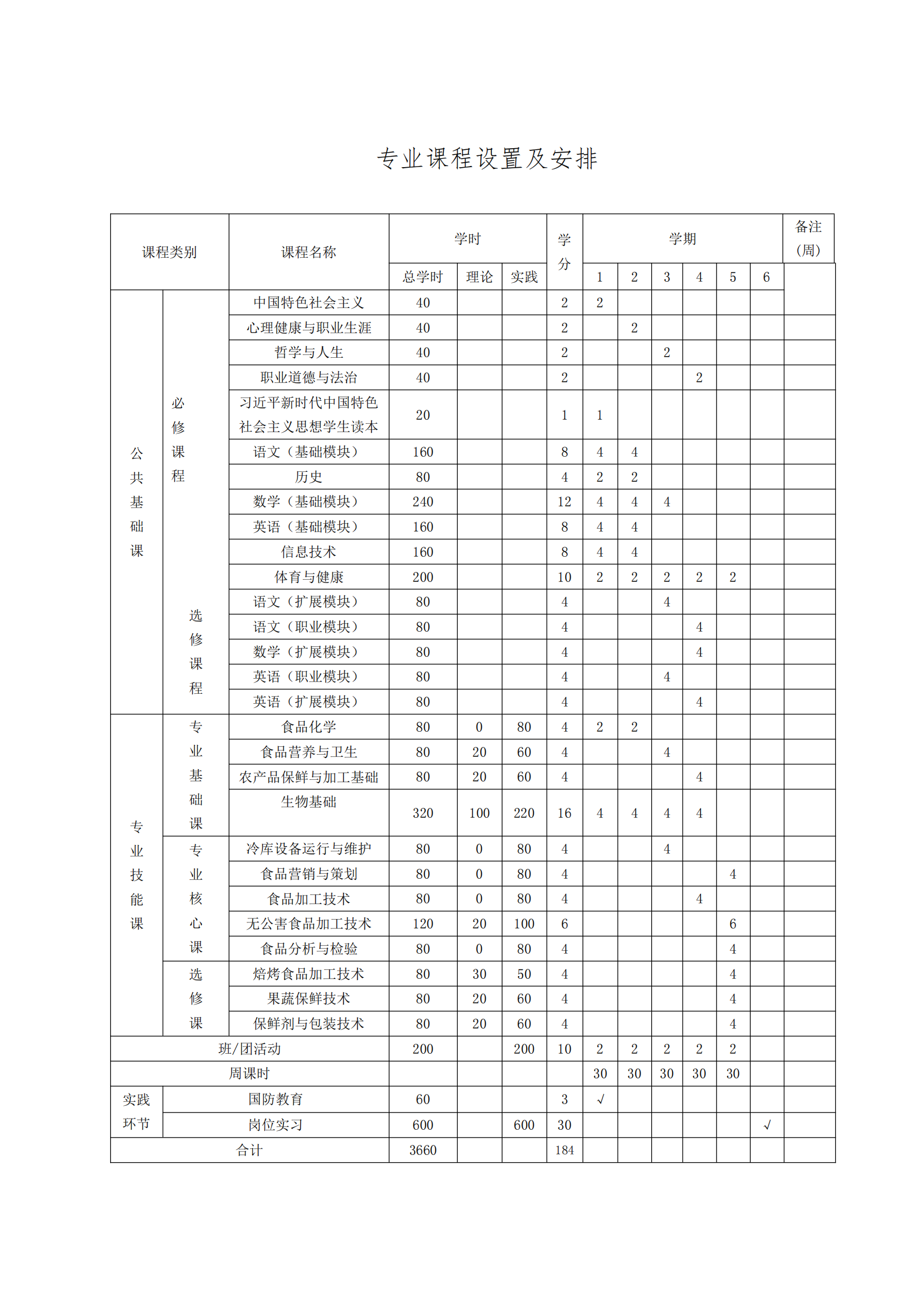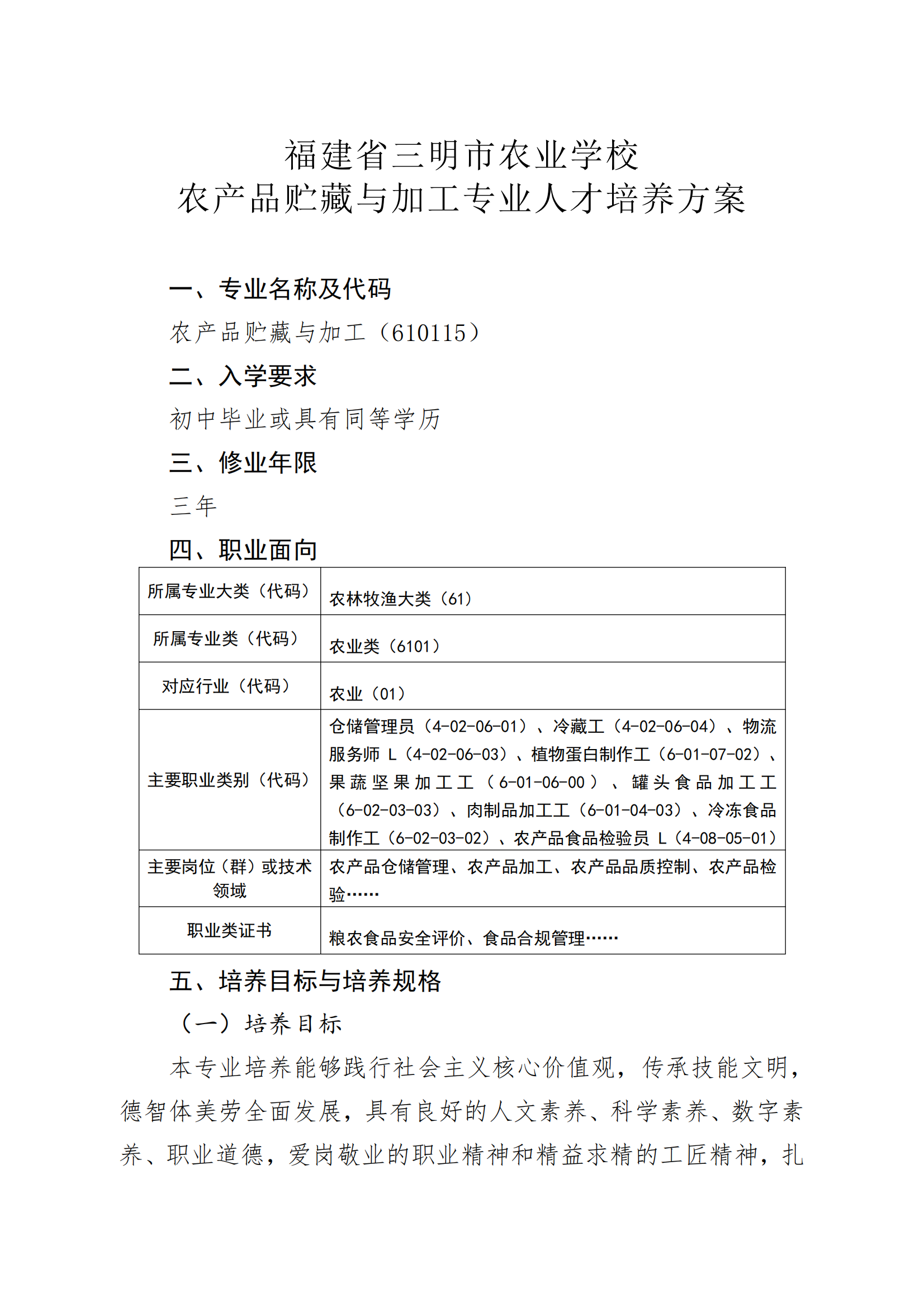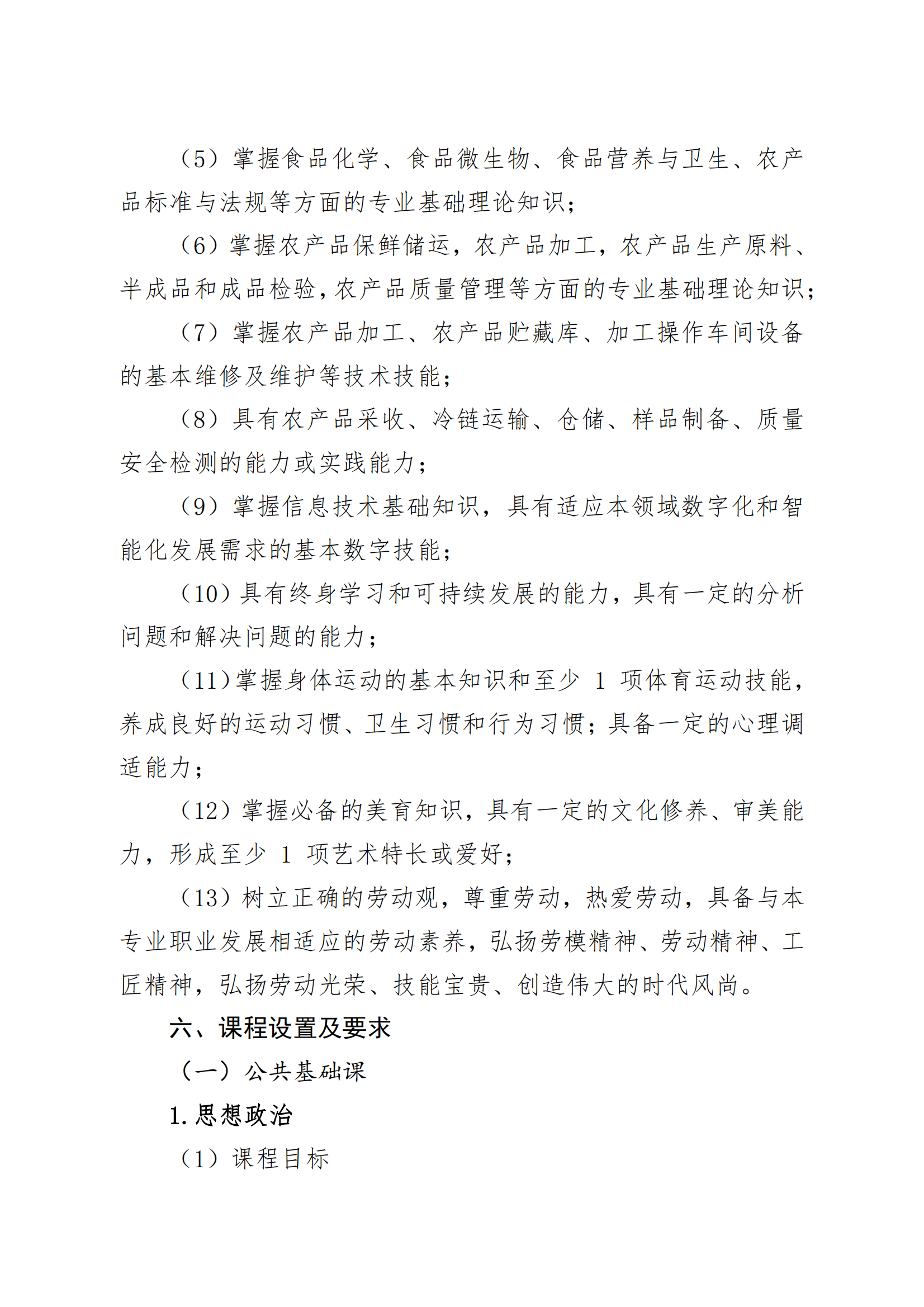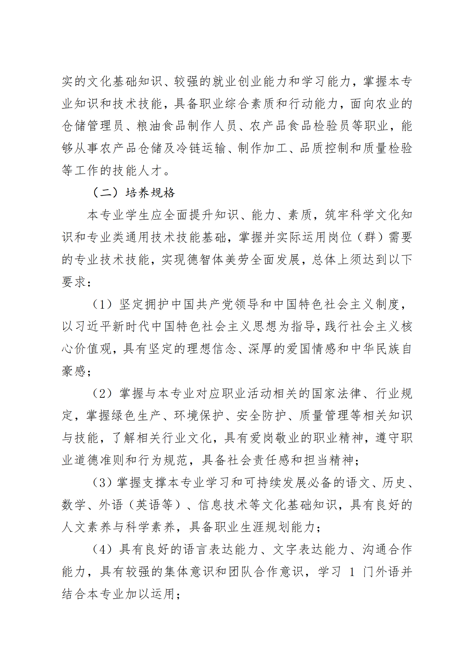 星空网页版登录入口农产品贮藏与加工专业人才培养方案