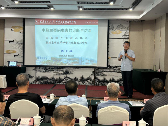 为让学员学到真知识、掌握硬本领,本次培训特邀福建农林大学蜂学与生物医药学院副院长、博士生导师陈大福教授授课。陈教授围绕 “中蜂特性与管理应用”“中蜂健康高效饲养”“中蜂病虫害诊断与防治” 三大核心主题,用通俗语言拆解技术难点,结合蜂业实际生产案例,让抽象的理论知识转化为可落地的养殖方案,让学员听得懂、能吸收、用得上。省级非遗项目传承人、养蜂专家毛祚胜则带领学员走进三明市蕉峰文旅产业发展有限公司实践基地,在 1200 平方米的蜜蜂科普馆内,他逐区解读蜂文化的深厚内涵;在 30 亩生态养蜂基地中,他手把手示范养殖实操技巧,将传统养蜂经验与现代文旅思维融合,拓宽学员 “以文化赋能蜂业” 的经营视野。